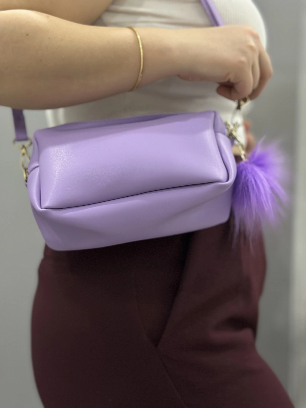 Modayı takip eden ve şıklıktan ödün vermeyenler için ideal bir seçenek olan Ponpon Mor Cilt Çanta, sizin tarzınızı yansıtacak.